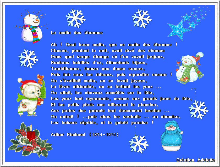 Poème imprimé sur le papier chiffon coton du moulin. Que téléchargent les membres après avoir consulté cette ressource ? Chacun, pendant la nuit, avait rêvé des siennes. Quel beau matin, que ce matin des étrennes ! حصريا تحميل كتاب « le matin des étrennes », une poésie d'arthur rimbaud مجاناً pdf اونلاين 2023 ah !