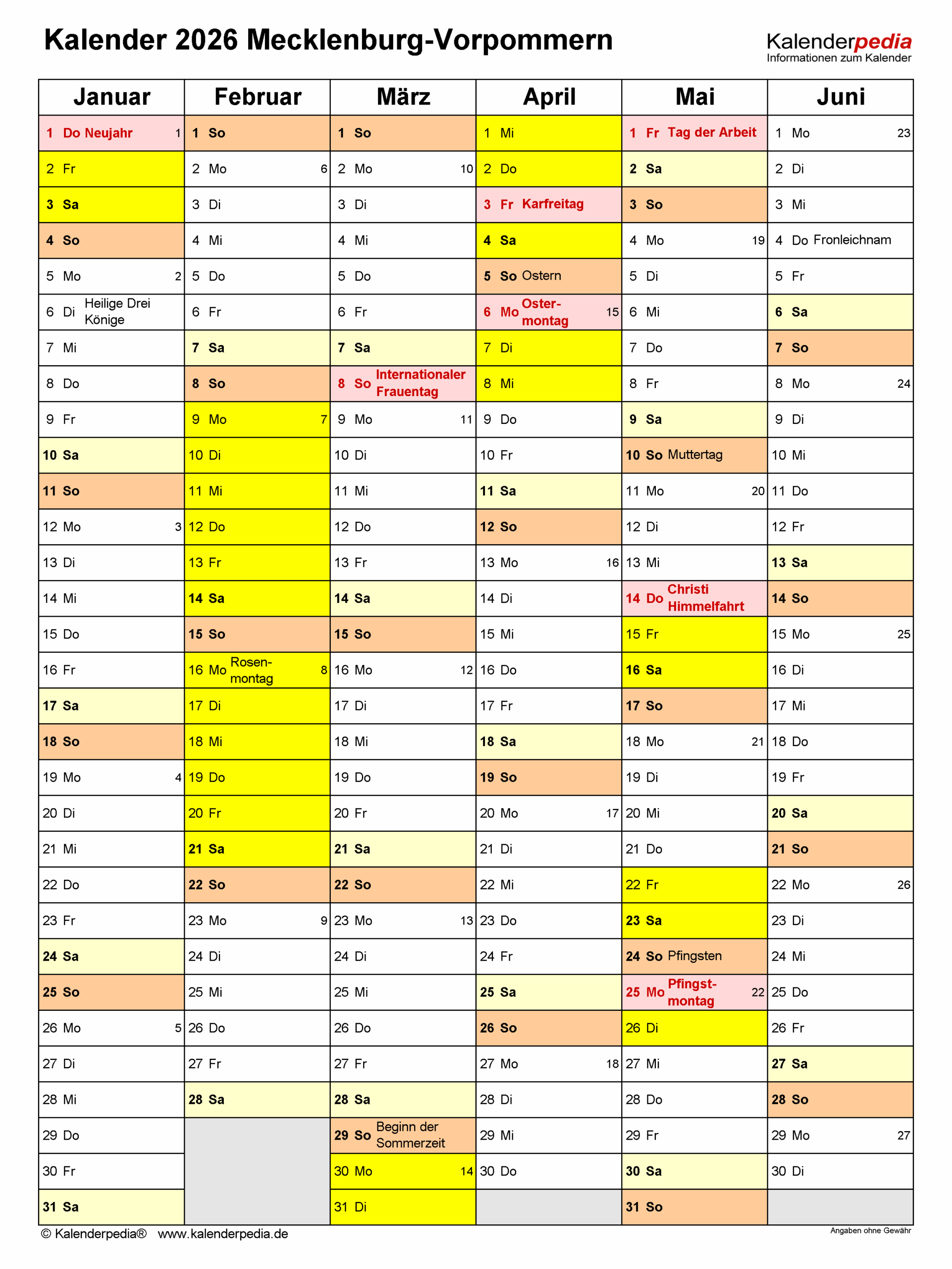 Kalender 2026 Mecklenburg-Vorpommern kostenlos: Ferien-Übersicht …